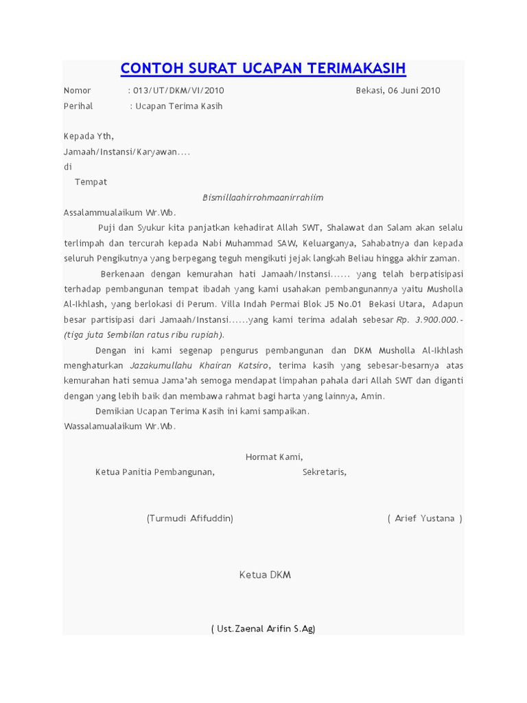 Surat Penghargaan Dan Terima Kasih Atas Sumbangan Letter 7saudara Com